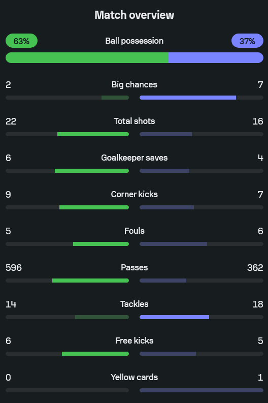 - เจ้าบ้านผ่านบอล 596 ครั้ง มากกว่าโคโม่ที่ทำได้ 362 ครั้ง