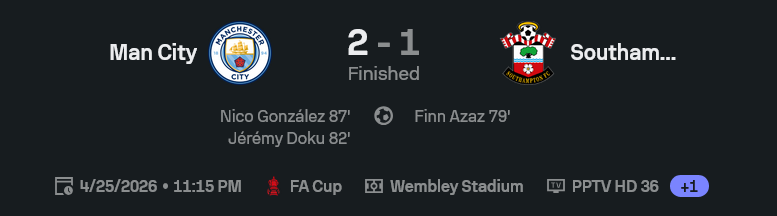 เกมนี้เป็นอีกนัดที่บอกเลยว่า แมนซิตี้ยังมีของ แต่ก็ยังมีช่วงที่เกมรุกดูเหมือนต่อบอลสวยจนลืมยิงให้เจ็บจริง โอกาสเพียบ ครองบอลเพลิน แต่กว่าจะได้ประตูต้องรอให้โดนเซาธ์แฮมป์ตันต่อยสวนก่อนถึงค่อยสะดุ้ง