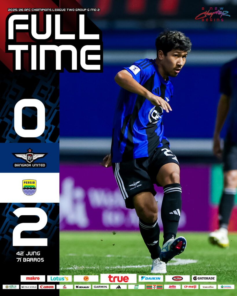 ทรู แบงค็อก ยูไนเต็ด พลาดโอกาสเก็บแต้มสำคัญในบ้าน หลังเปิดรัง ทรู บีจี สเตเดียม พ่าย เปอร์ซิบ บันดุง สโมสรดังจากอินโดนีเซียไป 0-2 ในศึก เอเอฟซี แชมเปี้ยนส์ ลีก ทู 2025/26 รอบแบ่งกลุ่ม สายจี นัดที่สอง ผลงานนี้ทำให้ “แข้งเทพ” ต้องเจองานหนักในเส้นทางต่อไปของถ้วยใหญ่เอเชีย