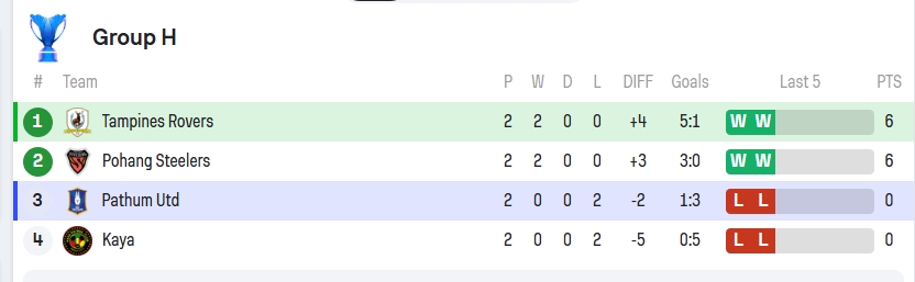 หลังเกมนี้ แทมปิเนส โรเวอร์ส เก็บเพิ่มเป็น 6 คะแนนเต็ม จาก 2 นัด นำจ่าฝูงร่วมกับ โปฮัง สตีลเลอร์ส ส่วน บีจี ปทุม ยูไนเต็ด พ่ายสองนัดรวดยังไม่มีแต้ม รั้งอันดับ 3 ต้องเร่งแก้เกมก่อนหลุดวงโคจรเข้ารอบ