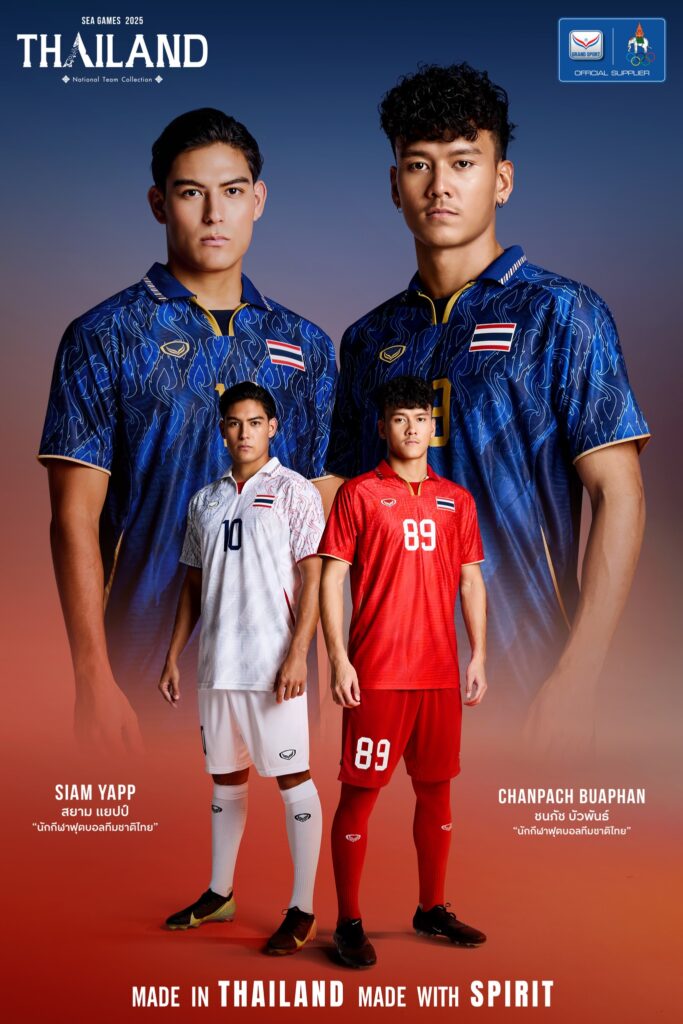 แบรนด์กีฬาชื่อดังของไทยอย่าง แกรนด์สปอร์ต เปิดตัวชุดแข่งขันใหม่ของ ทีมชาติไทย อย่างเป็นทางการ สำหรับใช้ในการแข่งขันฟุตบอลชายและหญิงในมหกรรมกีฬา ซีเกมส์ 2025 ครั้งที่ 33 ที่ประเทศไทยจะเป็นเจ้าภาพ โดยชุดแข่งใหม่นี้ได้รับการออกแบบอย่างพิถีพิถัน ทั้งด้านความงามและสมรรถนะ เพื่อเป็น “เกราะศักดิ์สิทธิ์” แห่งความภาคภูมิใจของคนไทยทั้งชาติ