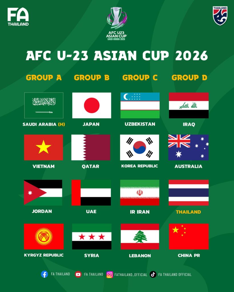 ผลการจับสลากส่งให้ ทีมชาติไทย U23 อยู่ในกลุ่มสุดหิน ประกอบด้วย