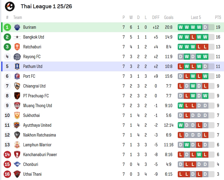 หลังเกมนี้ บุรีรัมย์ ยูไนเต็ด ยังรั้งจ่าฝูงด้วย 19 คะแนน จาก 7 นัด ชนะ 6 เสมอ 1 ยังไร้พ่าย ส่วน บีจี ปทุม ยูไนเต็ด อยู่อันดับ 5 มี 11 คะแนน จาก 7 นัด แม้แต้มตามหลัง แต่ฟอร์มเริ่มกลับมา และเกมนี้ถือว่า “แชร์แต้มจากทีมแชมป์” ได้อย่างยอดเยี่ยม