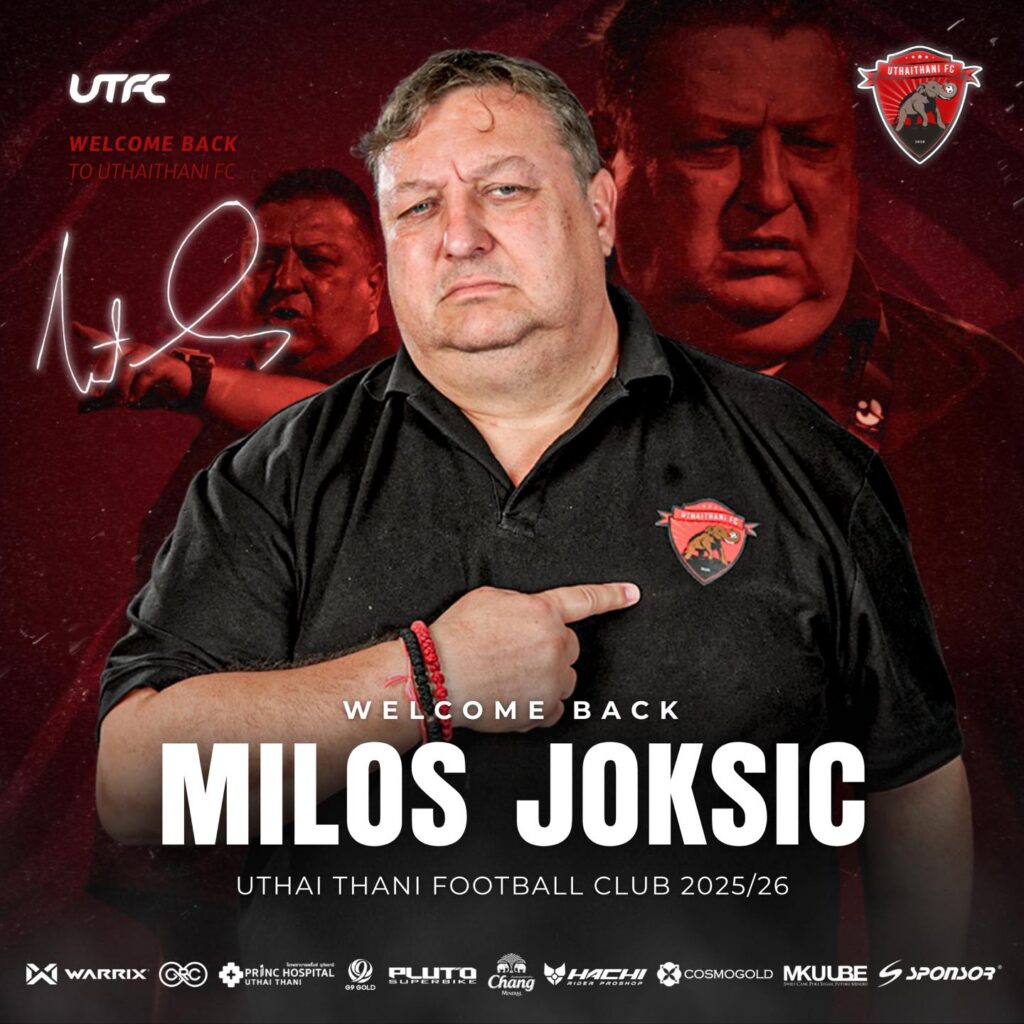 “ช้างป่าห้วยขาแข้ง” อุทัยธานี เอฟซี ทีมบ๊วยของตารางศึก บีวายดี ซีไลออน ซิกส์ ลีกหนึ่ง 2025/26 ประกาศแต่งตั้ง มิลอส ย็อคซิช เฮดโค้ชชาวเซอร์เบียวัย 57 ปี กลับมารับตำแหน่งกุนซืออีกครั้งอย่างเป็นทางการ หลังเคยฝากผลงานไว้ในฤดูกาลก่อน โดยภารกิจครั้งนี้ชัดเจน — พาทีมกลับมาสู่เส้นทางที่ถูกต้องและหนีโซนตกชั้นให้ได้โดยเร็วที่สุด