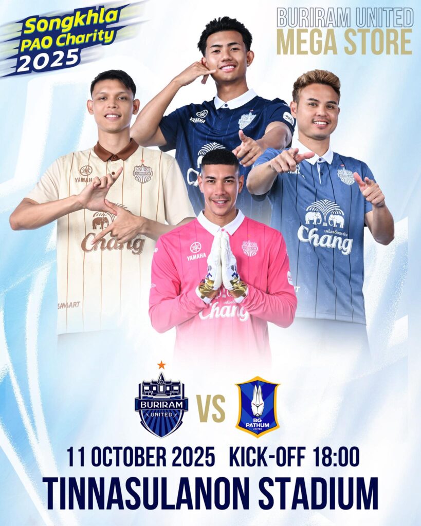 “พรุ่งนี้ ไม่มี 3 แต้มให้เก็บ แต่เราจะไปสะสมแต้มบุญ แมตช์การกุศล บุรีรัมย์ ยูไนเต็ด : บีจี ปทุม ยูไนเต็ด สนามติณสูลานนท์ จ.สงขลา”