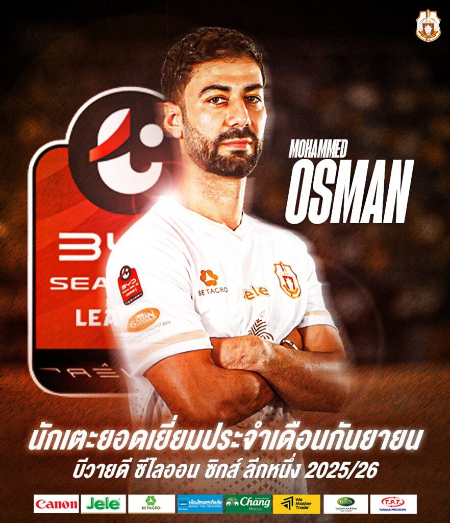 อีกหนึ่งคนที่ฟอร์มแรงไม่แพ้กันคือ โมฮัมเหม็ด ออสมาน จอมทัพเชิงสูงของ ลำพูน วอริเออร์ ซึ่งผลงานของเจ้าตัวในเดือนกันยายนถือว่ายอดเยี่ยมทั้งการทำประตูและการสร้างสรรค์เกมรุก