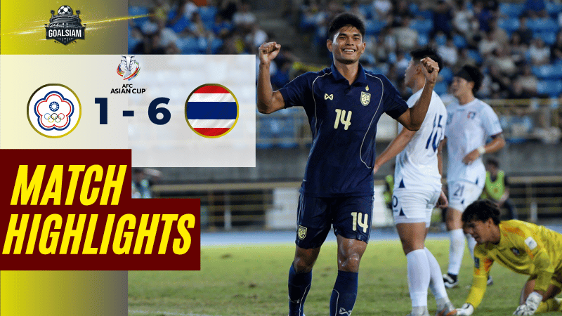 ไฮไลท์บอล ช้างศึกฟอร์มโหด! ไทยบุกถล่ม ไชนีส ไทเป 6-1 ศึกเอเชียนคัพ รอบคัดเลือก
