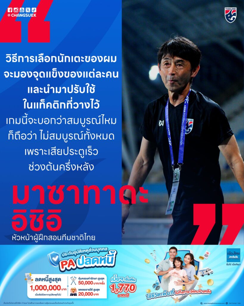 คำพูดดังกล่าวสะท้อนชัดว่ากุนซือชาวญี่ปุ่นรายนี้ไม่เพียงพอใจกับผลการแข่งขัน แต่ยังมองไปไกลถึงการพัฒนารูปแบบการเล่นและแท็คติกของทีมชาติไทยให้สมบูรณ์ยิ่งขึ้น