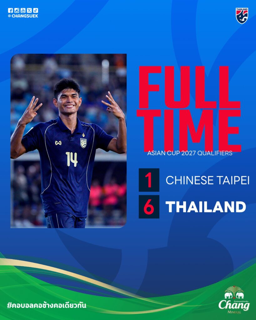 ชัยชนะนัดนี้ทำให้ทีมชาติไทยเก็บเพิ่มเป็น 9 คะแนน จาก 4 นัด ยังคงรักษาโอกาสในการลุ้นผ่านเข้าสู่รอบต่อไปของศึก เอเชียน คัพ 2027 ได้อย่างสดใส