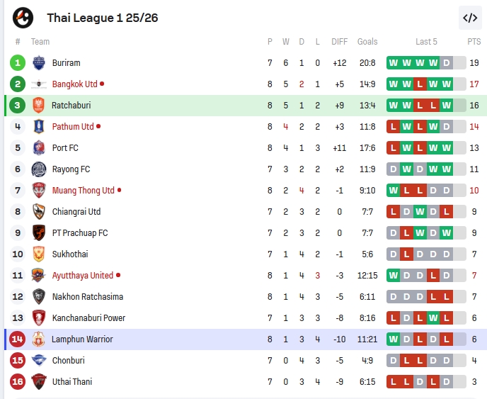 หลังเกมนี้ ราชบุรี เอฟซี ขยับขึ้นมารั้งอันดับ 3 ของตาราง มี 16 คะแนน จาก 8 นัด ตามหลังจ่าฝูงบุรีรัมย์ ยูไนเต็ดเพียง 3 แต้ม ฟอร์มช่วงหลังถือว่าร้อนแรงสุดๆ ส่วน ลำพูน วอริเออร์ ยังคงนิ่งที่อันดับ 14 มี 6 คะแนนจาก 8 นัด ต้องเร่งปรับเกมรับหากไม่อยากจมท้ายตาราง