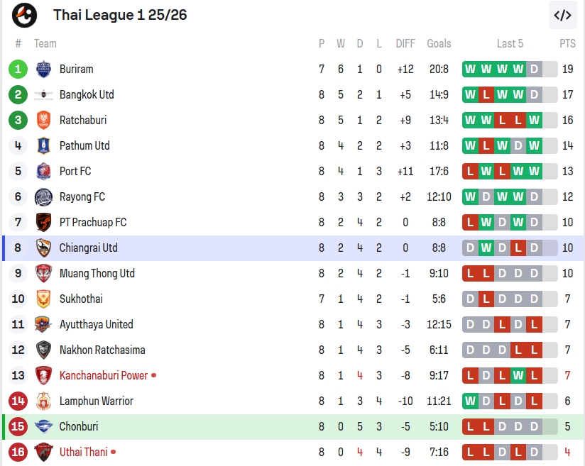 หลังจบเกมนี้ เชียงราย ยูไนเต็ด รั้งอันดับ 8 ของตาราง แข่ง 8 นัด ชนะ 2 เสมอ 4 แพ้ 2 มี 10 คะแนน ผลต่างประตูได้เสีย 8:8 ส่วน ชลบุรี เอฟซี ยังคงอยู่ในอันดับ 15 มีเพียง 5 คะแนนจาก 8 นัด ผลงานน่ากังวลอย่างยิ่ง