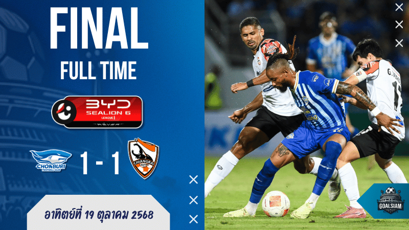 ศึก ไทยลีก 1 คู่มันส์ประจำค่ำคืนระหว่าง ชลบุรี เอฟซี เปิดบ้านรับการมาเยือนของ เชียงราย ยูไนเต็ด จบลงด้วยผลเสมอสุดดราม่า 1-1 แบ่งกันไปทีมละแต้ม เกมนี้แฟนบอลได้ลุ้นกันตั้งแต่นาทีแรกจนถึงวินาทีสุดท้าย โดยมีใบแดง VAR และจุดโทษเข้ามาเป็นจุดเปลี่ยนสำคัญของเกม