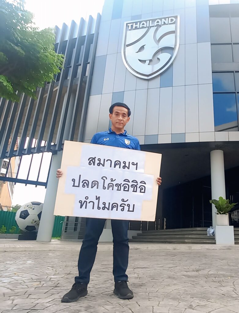 กระแสความไม่พอใจยังคงร้อนแรง หลังจาก สมาคมกีฬาฟุตบอลแห่งประเทศไทย ประกาศแยกทางกับ มาซาทาดะ อิชิอิ อดีตกุนซือทีมชาติไทยชุดใหญ่ ล่าสุดเกิดเหตุการณ์ “น้าเอ๋” ชัยรัตน์ กลุ่มไหม แฟนพันธุ์แท้ของทีมชาติไทย บุกถึงหน้าที่ทำการสมาคมฯ พร้อมป้ายข้อความใหญ่เพื่อเรียกร้องคำชี้แจงอย่างเป็นทางการถึงสาเหตุของการปลดกุนซือรายนี้ออกจากตำแหน่ง