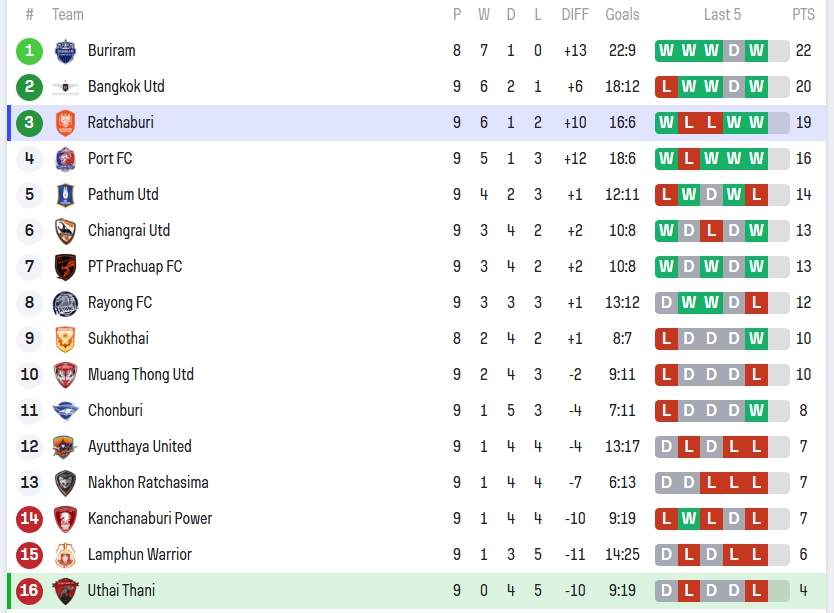 ชัยชนะนัดนี้ส่งให้ ราชบุรี เอฟซี เก็บเพิ่มเป็น 19 คะแนน รั้งอันดับ 3 ของตาราง ไล่จี้ แบงค็อก ยูไนเต็ด ที่มี 20 แต้ม และ บุรีรัมย์ ยูไนเต็ด ที่นำอยู่ 22 แต้มแบบติดๆ ฟอร์มกำลังร้อนแรงสุดๆ ในช่วงนี้ ส่วนเจ้าถิ่น อุทัยธานี เอฟซี จมอยู่ท้ายตาราง อันดับ 16 มีเพียง 4 คะแนนจาก 9 นัด ยังไม่ชนะใครในซีซั่นนี้ เป็นสถานการณ์ที่เริ่มต้องดิ้นหนีตกชั้นอย่างจริงจัง