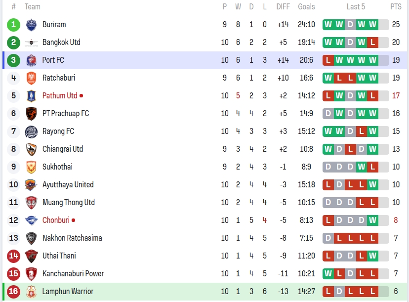 หลังเกมนี้ การท่าเรือ เอฟซี เก็บเพิ่มเป็น 19 คะแนน จาก 10 นัด ขึ้นรั้งอันดับ 3 ของตารางตามหลัง แบงค็อก ยูไนเต็ด แค่แต้มเดียว ส่วน ลำพูน วอริเออร์ ยังคงอยู่อันดับสุดท้ายที่ 16 มีเพียง 6 คะแนนจาก 10 นัด ยิงได้เพียง 14 เสียถึง 27 ลูก