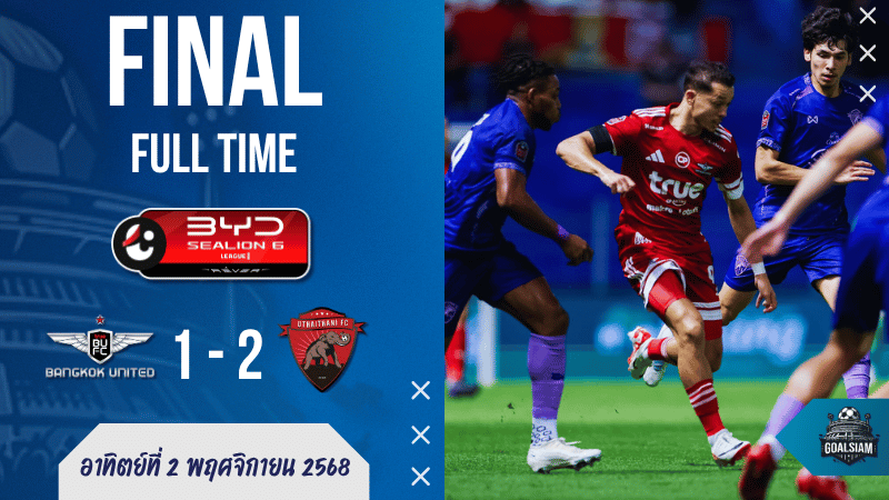 • 🔔 FT: ทรู แบงค็อก ยูไนเต็ด 1–2 อุทัยธานี เอฟซี