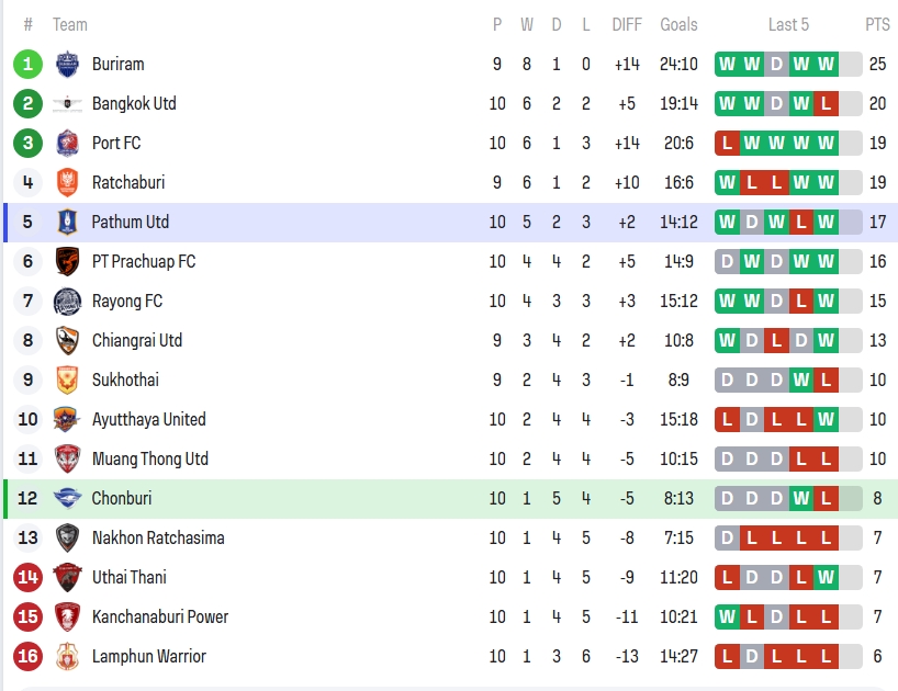 หลังจบเกมนี้ บีจี ปทุม ยูไนเต็ด ขยับขึ้นไปรั้ง อันดับ 3 ของตาราง ด้วย 20 คะแนนจาก 10 นัด ไล่จี้จ่าฝูงเพียงแต้มเดียว ส่วน ชลบุรี เอฟซี หล่นมาอยู่อันดับ 12 มีเพียง 9 คะแนนจาก 10 นัด ต้องเร่งฟอร์มด่วนหากไม่อยากเข้าใกล้โซนตกชั้น
