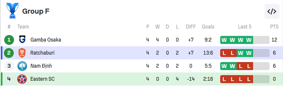 ราชบุรีกลับมามี 6 คะแนนเต็มจาก 4 นัด เท่ากับ Nam Dinh, รั้งอันดับ 2 ตามหลัง Gamba Osaka ที่เก็บชัยรวด 12 แต้มเต็ม โดยเกมนี้ช่วยเพิ่มผลต่างประตูได้เสียของราชบุรีเป็น +7 เท่ากับทีมจ่าฝูง ซึ่งอาจกลายเป็นตัวแปรสำคัญในการลุ้นเข้ารอบต่อไป