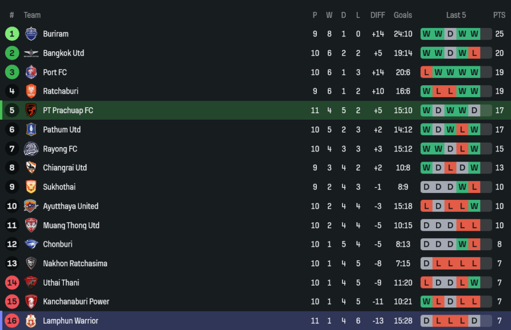 - ยิงทั้งหมด: ประจวบ 29 ครั้ง – ลำพูน 8 ครั้ง