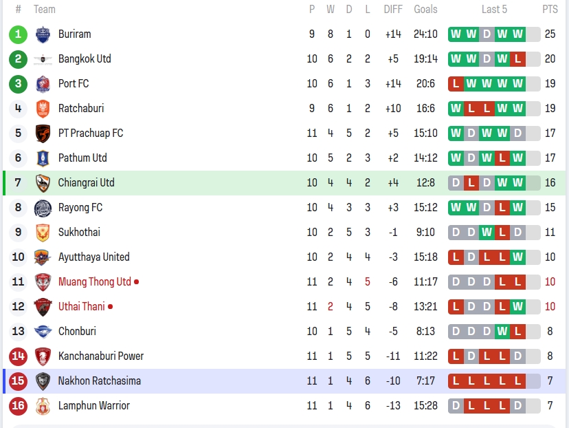 ชัยชนะนัดนี้ทำให้ เชียงราย ยูไนเต็ด ขยับขึ้นมาอยู่อันดับ 7 ของตาราง มี 16 แต้มจาก 10 นัด ฟอร์มเริ่มกลับมาร้อนแรง ส่วน นครราชสีมา เอฟซี หล่นไปอยู่อันดับ 15 มีเพียง 7 แต้มจาก 11 นัด สถานการณ์เริ่มน่าเป็นห่วง เพราะแพ้ 5 นัดติดและยังยิงได้เพียง 7 ลูกจาก 11 เกม – ถ้ายังเล่นแบบนี้คงต้องลุ้นหนีตกชั้นยาวๆ