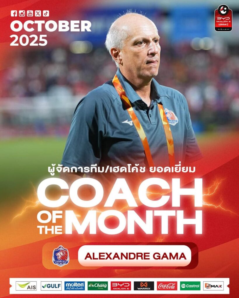 รางวัลโค้ชยอดเยี่ยมเดือนตุลาคมนี้ จึงไม่ใช่แค่เครื่องหมายการันตีผลงานระยะสั้น แต่เป็นอีกหนึ่งหลักฐานว่าเขายังเป็นหนึ่งในกุนซือที่ “อันตรายที่สุด” ในลีกสูงสุดของไทยอยู่เสมอ