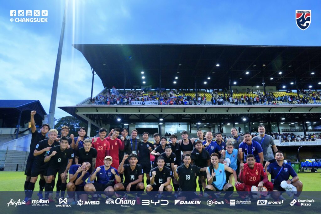 เกมนี้ขุนพล “ช้างศึก” ภายใต้การนำทัพที่กำลังมั่นใจสุดขีด ไม่ปล่อยให้แฟนบอลต้องผิดหวัง เดินหน้ากดดันคู่แข่งตั้งแต่นาทีแรกจนนาทีสุดท้าย โดยได้ประตูเบิกร่องและปิดกล่องจากขุมกำลังที่เฉียบคม นำโดย ธนวัฒน์ ซึ้งจิตถาวร ห้องเครื่องจอมทัพที่สอดขึ้นมายิงได้อย่างงดงาม ตามด้วยฟอร์มอันร้อนแรงของ จู๊ด เบลล์ กองหน้าลูกครึ่งที่ระเบิดฟอร์มเหมาคนเดียว 2 ประตู แสดงสัญชาตญาณเพชฌฆาตอย่างเต็มเปี่ยม ก่อนที่ปราการหลังจอมแกร่งอย่าง พรรษา เหมวิบูลย์ จะขึ้นมาโขกตอกฝาโลง ส่งผลให้ไทยคว้า 3 แต้มสำคัญกลับบ้านแบบไร้รอยขีดข่วน