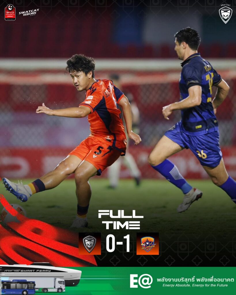 นครราชสีมา มาสด้า เอฟซี เปิดรังสนามกีฬาเฉลิมพระเกียรติ 80 พรรษา แต่ต้องพ่าย อยุธยา ยูไนเต็ด 0-1 ในศึก บีวายดี ซีไลออน ซิกส์ ลีกหนึ่ง 2025/26 นัดที่ 12 ผลลัพธ์นี้ยืดสถิติ “ไร้ชัย” ในลีกของ สวาทแคท ออกไปเป็น 10 นัดติด (เสมอ 3 แพ้ 7) ภาพรวม 12 นัด (ชนะ 1 เสมอ 4 แพ้ 7) เก็บเพียง 7 คะแนน รั้งบ๊วยอันดับ 16 ตามหลังโซนปลอดภัยของ เมืองทอง ยูไนเต็ด อันดับ 13 อยู่ 3 คะแนน สถานการณ์หนีตกชั้นตึงมือแบบไร้ที่ถอย