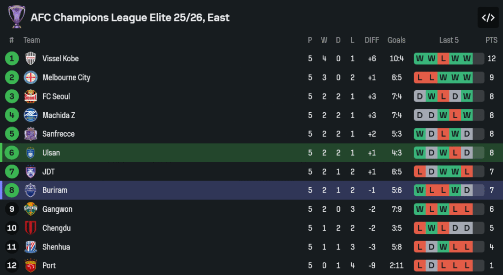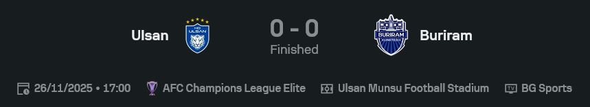 • หลังจบเกมนี้ อุลซานมี 8 แต้ม บุรีรัมย์ 7 แต้ม ในกลุ่มอีสต์ ยังต้องไปวัดดวงกันต่อในนัดท้าย ๆ ของรอบแบ่งกลุ่ม