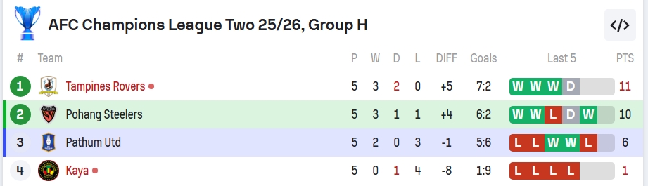 โปฮัง สตีลเลอร์ส ขยับเป็น 10 คะแนน นั่งรองจ่าฝูงตามหลังแทมปิเนสเพียงแต้มเดียว ฟอร์มภาพรวมแน่นและคมเข้ารอบชัวร์