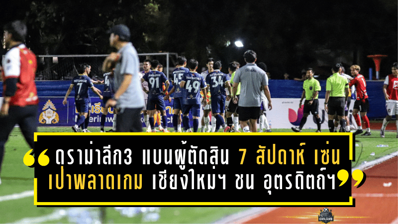 คณะกรรมการพิจารณา วินัย มารยาท ของสมาคมลูกหนังไทย สั่งลงดาบแบน ผู้ตัดสิน รวม 7 สัปดาห์ จากเกม บีวายดี ดอลฟิน ลีกสาม โซนภาคเหนือ คู่ที่ เชียงใหม่ เอฟซี เปิดบ้านเสมอ อุตรดิตถ์ เอฟซี 1-1 เมื่อวันที่ 15 พฤศจิกายน ที่ผ่านมา หลังตรวจสอบแล้วพบว่ามี “ความผิดพลาดชัดเจน” ถึง 2 จังหวะใหญ่ในเกมเดียว