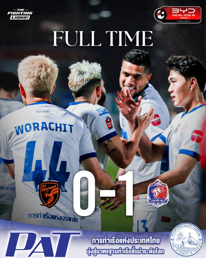 เกมมันเดือดที่สนามของ พีที ประจวบ เอฟซี ในศึก BYD SEALION 6 LEAGUE 1 เมื่อการดวลกันระหว่าง PTPC พบ PORT จบลงด้วยสกอร์ 0-1 โดยเป็นฝั่ง การท่าเรือ เอฟซี ที่เล่นได้เฉียบคมกว่า บุกมากดสามแต้มกลับคลองเตย พร้อมต่อยอดฟอร์มร้อนแรงคว้าแชมป์สถิติชนะเกมเยือนใน ไทยลีก ติดต่อกันเป็นนัดที่ 3