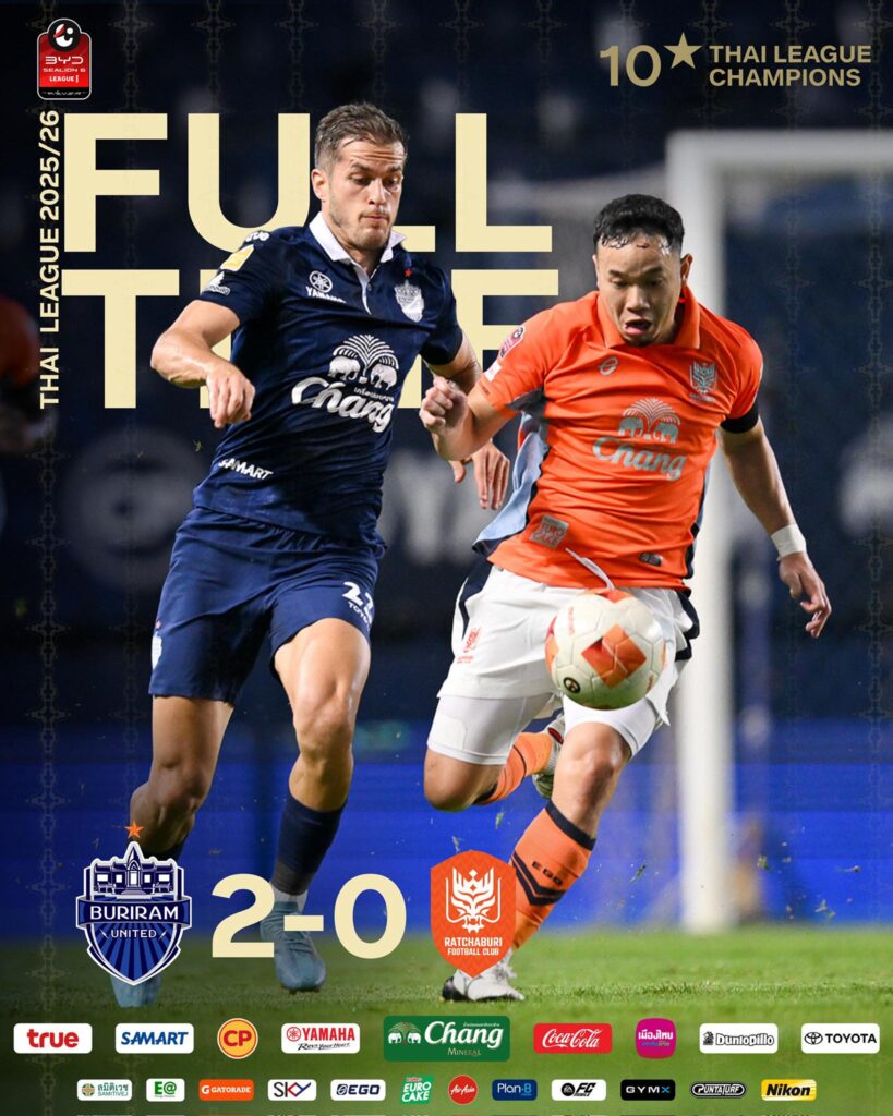 บุรีรัมย์ ยูไนเต็ด โชว์ของในบ้าน ปราบราชบุรี 2-0 คว้าชัยสำคัญบนทางล่าแชมป์