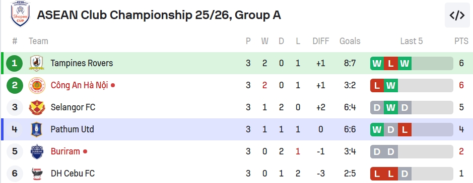 ตารางคะแนนกลุ่ม A ตอนนี้บอกเลยว่า บีจี ปทุม ยูไนเต็ด อยู่ในสถานการณ์ที่น่าเป็นห่วงแล้ว! แทมปิเนส โรเวอร์ส ที่เก็บ 3 แต้มสำคัญนี้พุ่งขึ้นนำเป็นจ่าฝูง มี 6 คะแนนจาก 3 นัด (ชนะ 2 เสมอ 0 แพ้ 1, ผลต่าง +7) ส่วนอันดับ 2 คือ กงอัน ฮานอย มี 6 แต้มเท่ากัน (ชนะ 2 เสมอ 0 แพ้ 1, ผลต่าง +2) เซลังงอร์ เอฟซี ตามมาที่ 5 แต้ม ขณะที่ บีจี ปทุม ยูไนเต็ด ร่วงไปอยู่อันดับ 4 มี 4 แต้มจาก 3 นัด (ชนะ 1 เสมอ 1 แพ้ 1) ตามมาด้วย บุรีรัมย์ฯ (2 แต้ม) และ ดีเอช เซบู (1 แต้ม) เกมที่เหลือจากนี้ “เดอะ แรบบิท” ต้องชนะสถานเดียวเท่านั้นถ้ายังอยากทะลุเข้ารอบ! อย่าให้เสียชื่อ ไทยลีก นะโว้ย!