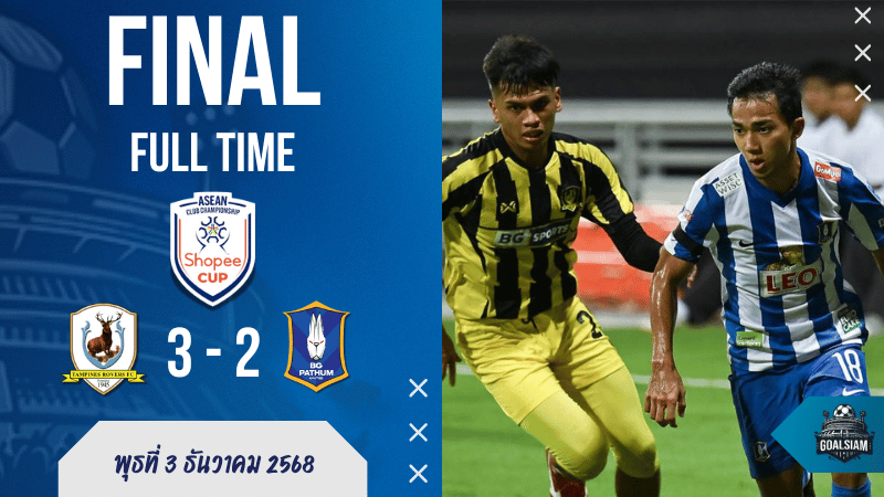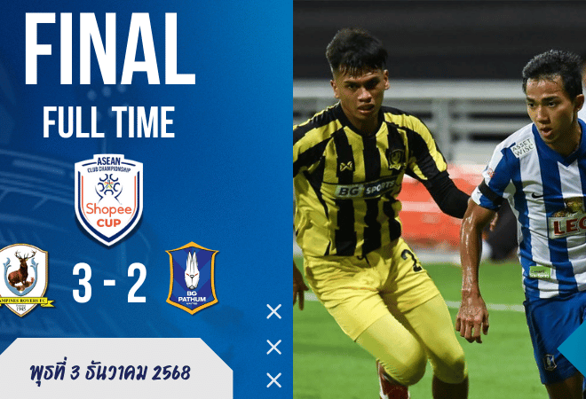 ช็อคไปเลยดิ! นี่คือการพ่ายแพ้ที่น่าเจ็บปวดที่สุดของ “เดอะ แรบบิท” บีจี ปทุม ยูไนเต็ด ในศึก ชิงแชมป์สโมสรอาเซียน Shopee Cup 2025-26 หลังออกนำไปก่อน 2-0 อย่างสบายอารมณ์ แต่สุดท้ายกลับโดน แทมปิเนส โรเวอร์ส จากสิงคโปร์ เปิดบ้านไล่แซงยับ 3-2 ชนิดที่กองหลังไทยลีคต้องกุมขมับ! ฮิเดะ ฮิกาชิกาวะ กลายเป็นปีศาจซัดแฮตทริกทำลายล้างความหวัง เก็บ 3 แต้มสำคัญให้เจ้าบ้านพุ่งขึ้นจ่าฝูงกลุ่ม A ชั่วคราว ส่วน บีจี ปทุมฯ ร่วงไปอยู่ที่ 4 มี 4 คะแนนเท่าเดิม! นี่มันเป็นเกมที่สะท้อนให้เห็นว่าบอลอาเซียนมันไม่ง่ายอย่างที่คิด!