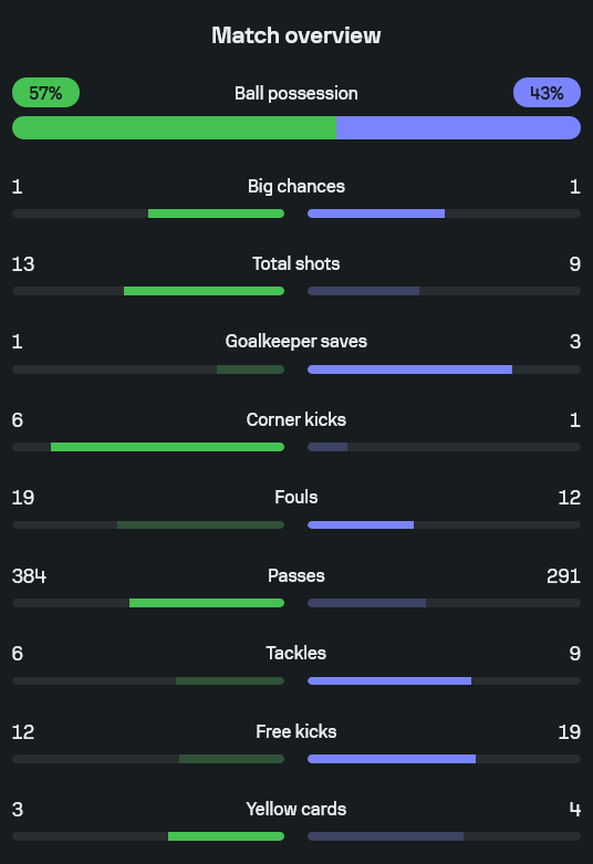- เมืองทองครองบอล 57% แต่แพ้ 2-3 สะท้อนชัดว่าครองบอลแล้วทำอะไรไม่ค่อยได้