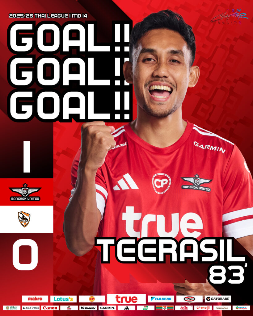 ค่ำคืนวันที่ 7 ธันวาคม 2568 กลายเป็นอีกหนึ่งหน้าสำคัญของฟุตบอลไทย เมื่อ ธีรศิลป์ แดงดา ดาวยิงระดับตำนานทีมชาติไทย ซัดประตูสุดสำคัญให้กับ ทรู แบงค็อก ยูไนเต็ด ในเกมเปิดรังเสมอ สิงห์ เชียงราย ยูไนเต็ด 1-1 ที่สนามทรู บีจี สเตเดียม พร้อมกับจารึกชื่อของตัวเองไว้ในประวัติศาสตร์ ไทยลีก อย่างเป็นทางการ