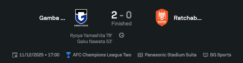 กัมบะ โอซาก้า เล่นเหมือนยึดรีโมตทั้งบ้าน ครองเกมเนียนๆ แล้วค่อย “ลงมีด” ทีละจังหวะ ก่อนจบด้วย ผลบอลสด กัมบะ โอซาก้า 2-0 ราชบุรี เอฟซี ที่ Panasonic Stadium Suita งานนี้ราชบุรีไม่ได้แย่ แค่เจอทีมที่เล่นเป็นระบบ…และ “ไม่ใจดี” 😏