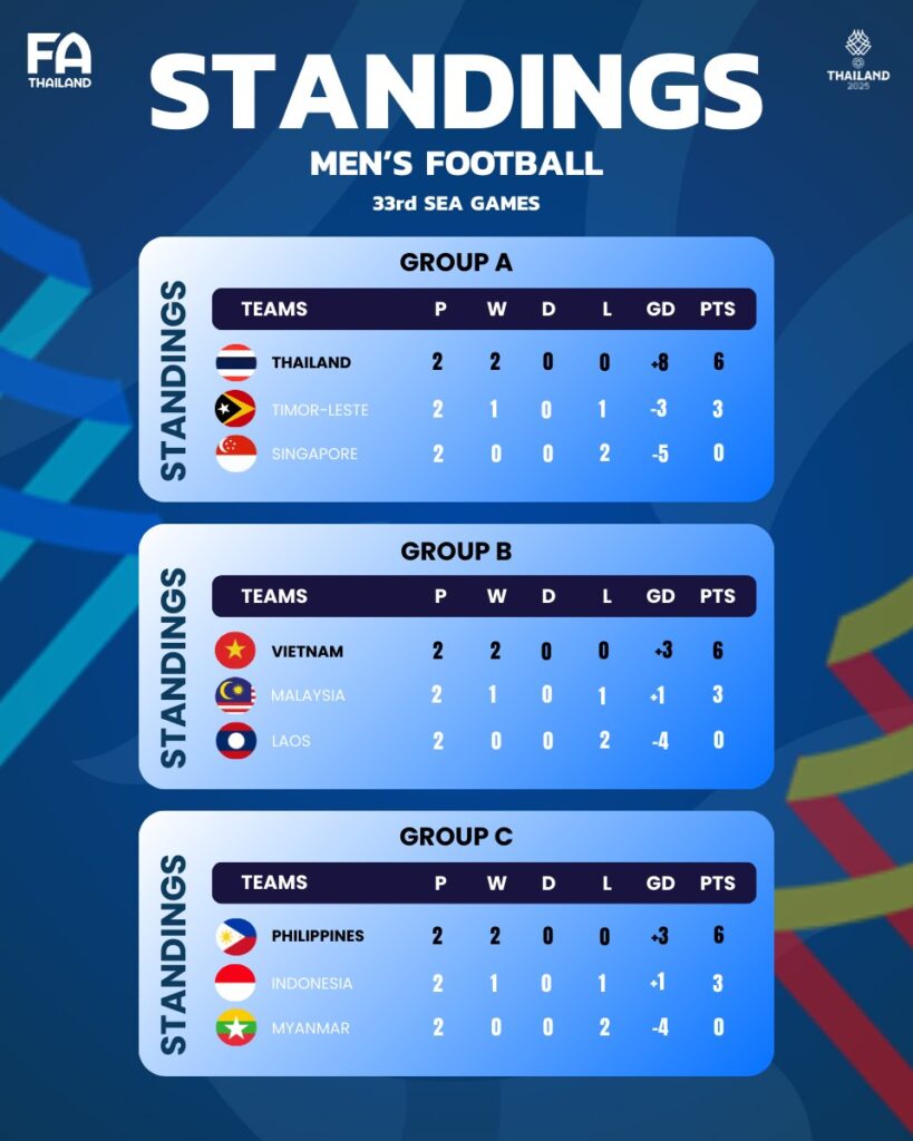 ภาพรวมศึกฟุตบอลชาย ซีเกมส์ 33 หลังจบสองนัดแรก