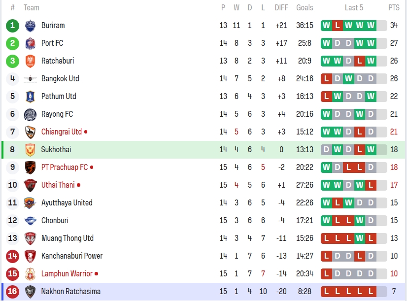 📉 อันดับในตารางคะแนน: สุโขทัยสบายตัว นครราชสีมา ‘โคม่า’