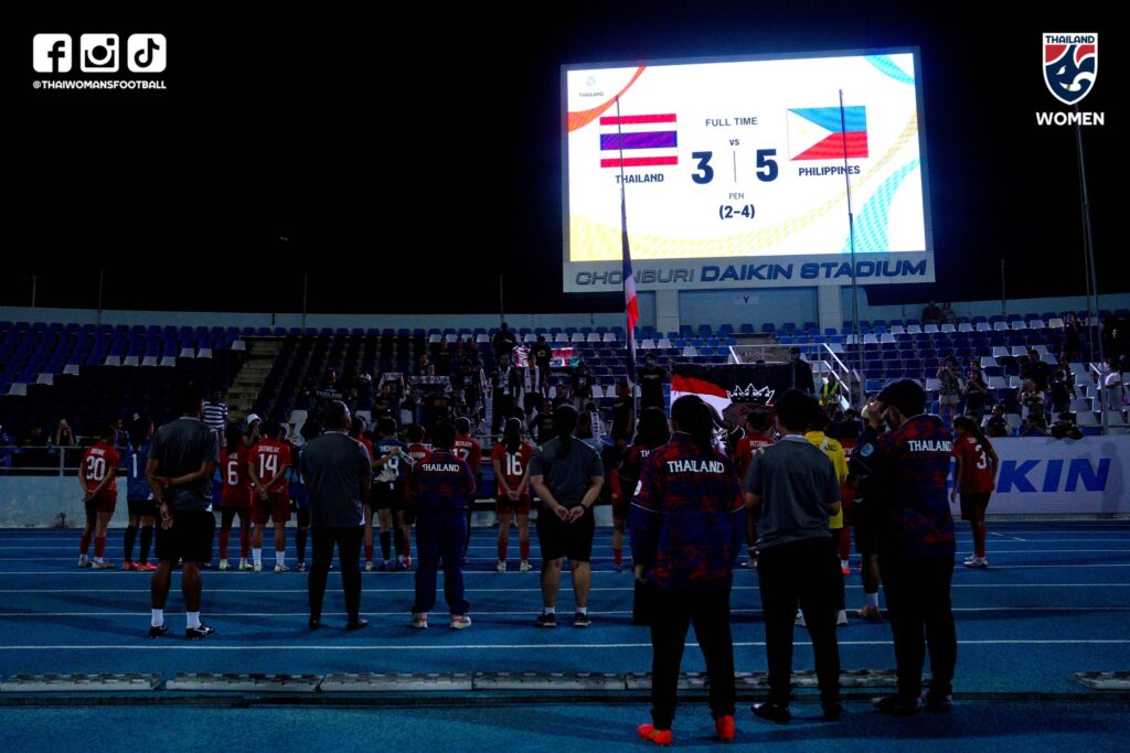 ตลอดทั้งเกม ไทยและฟิลิปปินส์สู้กันอย่างสูสี สถานการณ์พลิกไปมาหลายครั้ง ก่อนจะต้องตัดสินด้วยการดวลเป้าในช่วงท้าย ทุกสายตาจดจ้องไปที่เหล่านักเตะสาวไทยที่ยืนเรียงกันหน้าจุดโทษ พร้อมความกดดันถาโถม ทั้งจากความคาดหวังส่วนตัว เสียงหัวใจของตัวเอง และชื่อ “ทีมชาติไทย” ที่ต้องแบกไว้บนบ่า