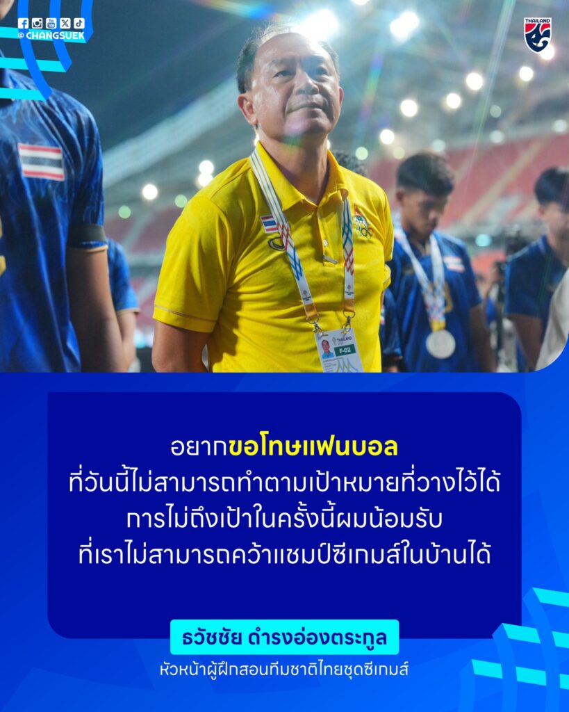 โค้ชวังพูดชัดเจนในน้ำเสียงของคนทำงานจริงจังว่า การไม่สามารถพาไทยคว้าเหรียญทองซีเกมส์ “ในบ้านตัวเอง” เป็นเรื่องที่เขาน้อมรับ และจะเก็บไปเป็นบทเรียนสำคัญในเส้นทางโค้ชทีมชาติ