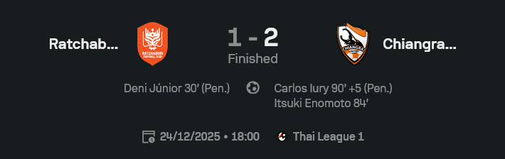 มองภาพรวมเกมนี้ ราชบุรีเล่นเหมือนทีมใหญ่ทุกอย่าง ทั้งการยืนเกมรุก ครองบอล ต่อบอลเนียนกว่า แต่ดันขาด “ดาบเล่มสุดท้าย” ปิดเกม ถ้าดูเชิง วิเคราะห์บอล แบบจริงจัง จะเห็นว่าพอขึ้นนำ 1-0 แล้วเจ้าถิ่นดร็อปความดุดัน เปิดโอกาสให้เชียงรายค่อยๆ ขยับสูง กลายเป็นโดนสวนกลับทีแทบหน้ามืด ลูกตีเสมอของเอโนโมโตะคือคลาสของหน้าเป้าต่างชาติที่จบคม ส่วนจุดโทษท้ายเกมมาจากความผิดพลาดเล็กๆ ในเขตโทษที่แลกด้วยสามแต้มเต็มๆ เกมนี้เลยเป็นตัวอย่างชัดๆ ว่าในไทยลีก ถ้าไม่ยิงฝัง คู่แข่งมีสิทธิ์ลากกลับมาบนหน้าปัดสกอร์ทุกวินาที โดยเฉพาะทีมที่มีตัวต่างชาติห้าวๆ อย่างเชียงราย