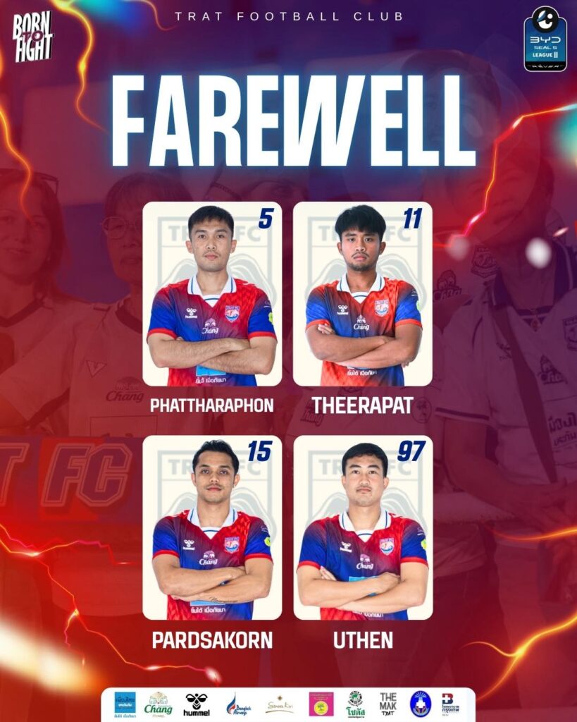 สโมสรย้ำว่าการร่วมงานตลอดช่วงเวลาที่ผ่านมา นักเตะทุกคนได้แสดงให้เห็นถึง “ความทุ่มเท” “ความเป็นมืออาชีพ” และ “แรงใจ” ที่มอบให้กับทีมอย่างเต็มที่ ทั้งในสนามและนอกสนาม พร้อมทั้งเป็นส่วนหนึ่งของความทรงจำที่มีคุณค่าของทีมและแฟนบอลตราด เอฟซี