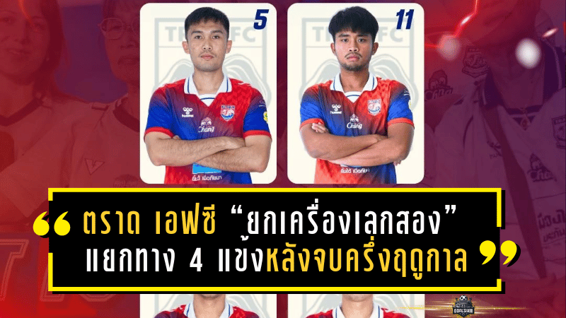 หลังปิดฉากเลกแรก ฤดูกาล 2025/26 “ตราด เอฟซี” ขยับตัวแบบไม่รีรอ เมื่อสโมสรออกมาประกาศ ขอบคุณและอำลา นักเตะ 4 รายอย่างเป็นทางการ ถือเป็นการปรับทัพเพื่อเตรียมความพร้อมก่อนเข้าสู่เลกสองที่เข้มข้นกว่าเดิม และทุกแต้มมีค่าเหมือนทองคำ