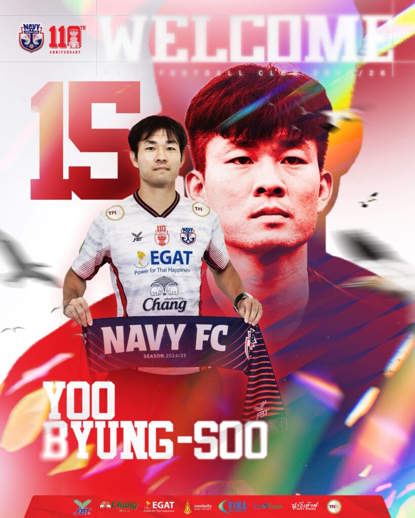 ราชนาวี เอฟซี ทีมอันดับ 2 ของตารางฟุตบอล T3 โซนภาคตะวันออก ฤดูกาล 2025/26 หลังผ่านครึ่งทางแรก เดินเกมตลาดแบบไม่พูดเยอะ แต่จัดให้หนักด้วยการบรรลุข้อตกลงคว้าตัว “ยู บยองซู” กองหน้าชาวเกาหลีใต้ วัย 37 ปี เข้ามาเสริมความเฉียบคมในแนวรุกสำหรับเลกสองเป็นที่เรียบร้อย นี่คือการขยับที่ชัดเจนว่าทัพ “ตะหานน้ำ” ต้องการความต่างในพื้นที่สุดท้าย และต้องการคนที่ “รู้วิธีชนะ” จากประสบการณ์ระดับสูงล้วน ๆ