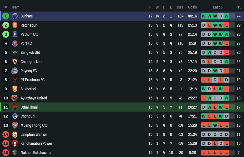 - ยิงทั้งหมด: อุทัยธานี 11 ครั้ง – บุรีรัมย์ 12 ครั้ง