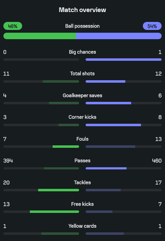 - นาที 85 บรูโน่ ไบโย โหม่งเต็มๆ จากเตะมุม แต่ นีล เอเธอร์ริดจ์ บินปัดสุดปลายมือ เซฟสเตตัสฮีโร่ของทีมเยือนไปเต็มๆ