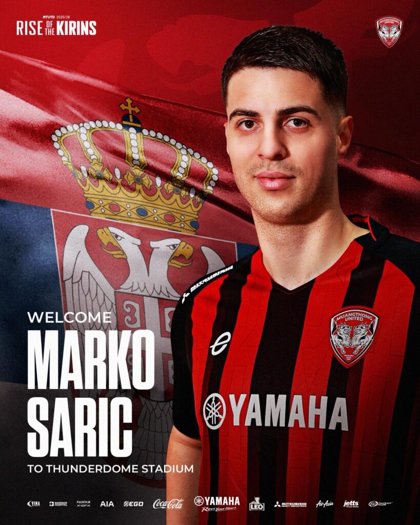 “เมืองทอง ยูไนเต็ด” เดินหน้าเสริมทัพรับเลกสองแบบไม่รอช้า ด้วยการประกาศคว้าตัว มาร์โก้ ซาริช กองหน้าชาวเซอร์เบียเข้ามาร่วมทีมอย่างเป็นทางการ เพื่อเพิ่มความอันตรายในแดนหน้าและเตรียมลุยศึก BYD SEALION 6 LEAGUE 1 ฤดูกาล 2025/26 ในช่วงครึ่งซีซั่นหลัง
