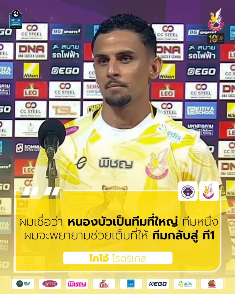 “ไคโอ โรดริเกส” แนวรุกชาวบราซิลของ หนองบัว พิชญ เอฟซี เปิดใจหลังโชว์ผลงานสุดคม ยิง 1 ประตู ทำ 1 แอสซิสต์ ช่วยทีมบุกเอาชนะ มหาสารคาม เอสบีที เอฟซี 3-1 ในศึกฟุตบอล บีวายดี ซีล ไฟว์ ลีกสอง 2025/26 นัดที่ 19 เมื่อวันที่ 17 ม.ค. ที่ผ่านมา ณ สนามกีฬากลางจังหวัดมหาสารคาม