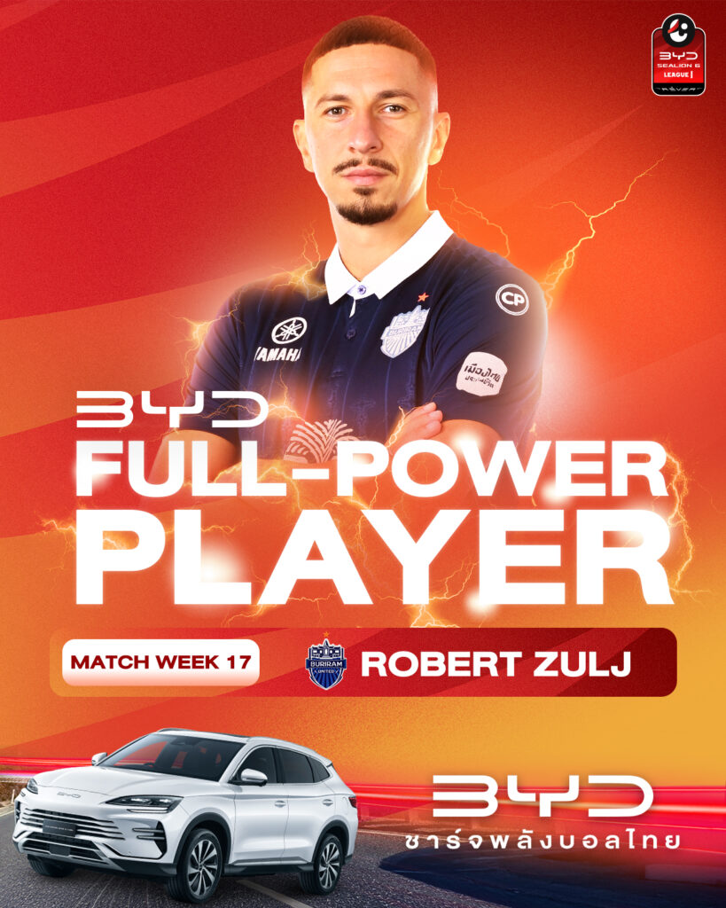 ศึก บีวายดี ซีไลออน ซิกส์ ลีกหนึ่ง 2025/26 ประจำสัปดาห์ที่ 17 ได้ผู้เล่นยอดเยี่ยมอย่างเป็นทางการแล้ว และชื่อที่ถูกเลือกคือ “ซูลจ์ผู้พี่” โรเบิร์ต ซูลจ์ จอมทัพของ บุรีรัมย์ ยูไนเต็ด